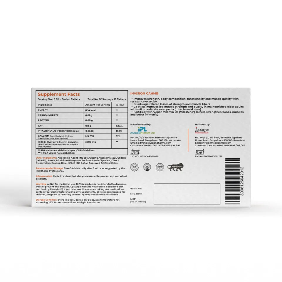 Fortified with Vegan Vitamin D3 (Vitashine): CaHMB 3000 is fortified with Vegan Vitamin D3 sourced from Vitashine. This essential nutrient plays a vital role in strengthening bones, muscles, and boosting immune function. It supports overall well-being and ensures you have the necessary foundation for peak performance.