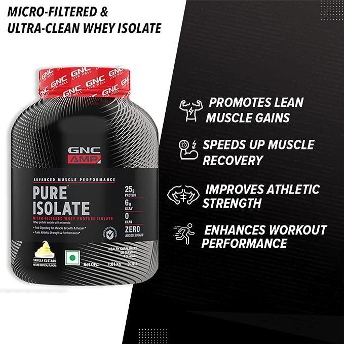 Introducing GNC AMP Pure Isolate, the ultimate whey protein formula designed to elevate your fitness journey. This high-quality whey isolate powder is enriched with the goodness of rapidly absorbed amino acids, providing you with 25g of pure whey isolate per serving. Whether you aim to achieve perfect lean cuts or fuel your muscle formation and repair, GNC AMP Pure Isolate is your go-to solution.