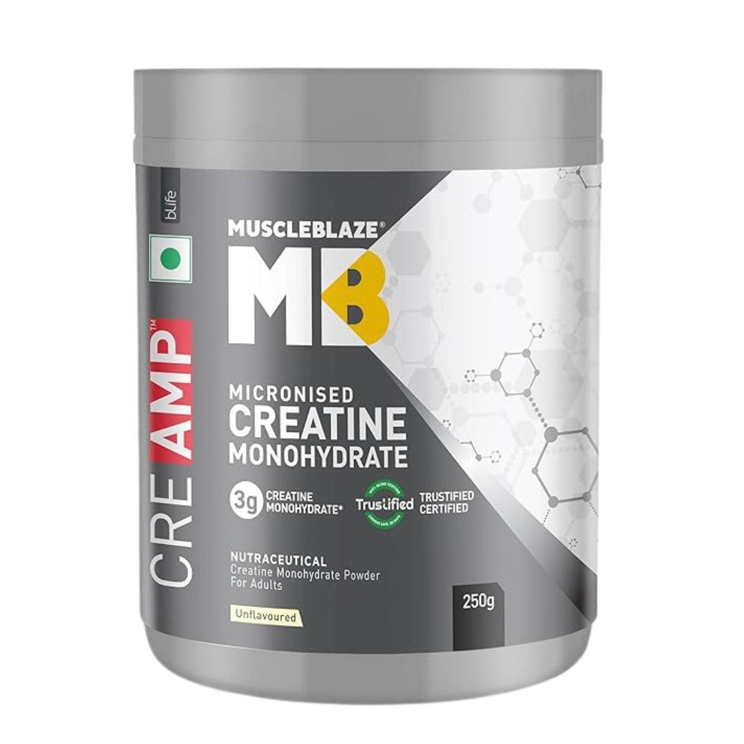 Take your performance to the next level with MuscleBlaze Micronised Creatine Monohydrate CreAMP Powder — a pure and potent formula designed for athletes, bodybuilders, and fitness lovers who want to maximize their results.