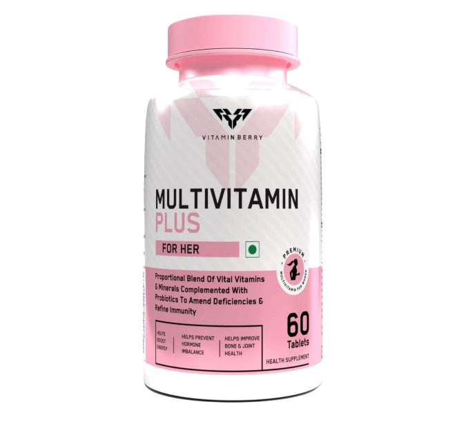 Vitaminberry Multivitamin Plus for Her is a proportional blend of vital vitamins and minerals complemented with probiotics to amend deficiencies and refine immunity.