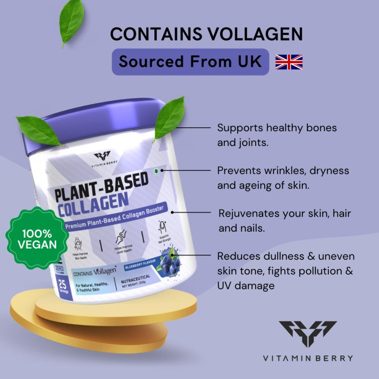 Introducing Vitaminberry Plant-Based Collagen—a groundbreaking supplement designed to help you radiate beauty and vitality from the inside out. Our innovative formula harnesses the potential of plant-based ingredients to support not only the appearance of your skin but also the health of your muscles, joints, hair, and nails. By prioritizing a holistic approach to wellness, we strive to provide you with the means to maintain optimal connective tissue health, enhance skin elasticity, and nurture your body for lasting beauty and strength.